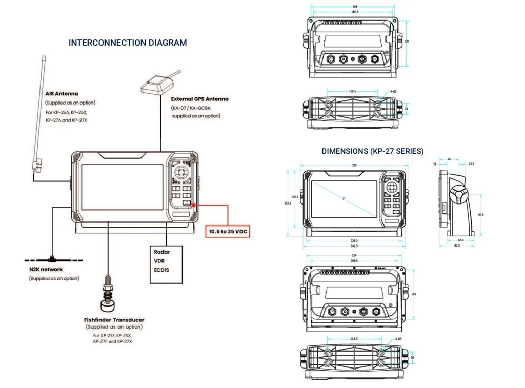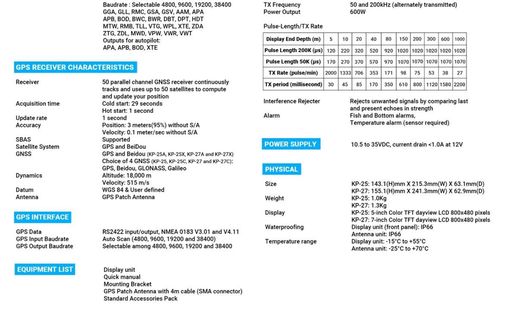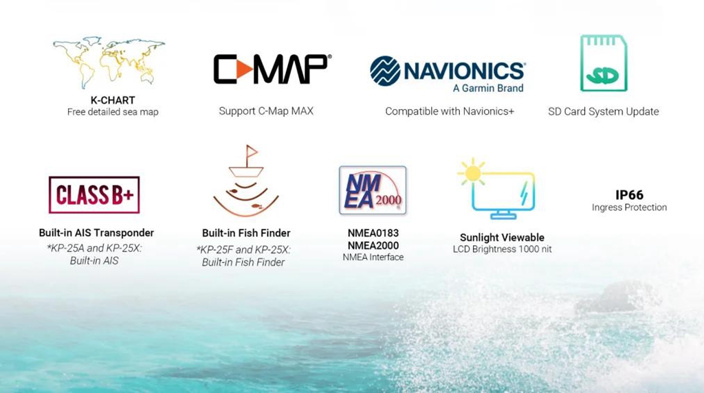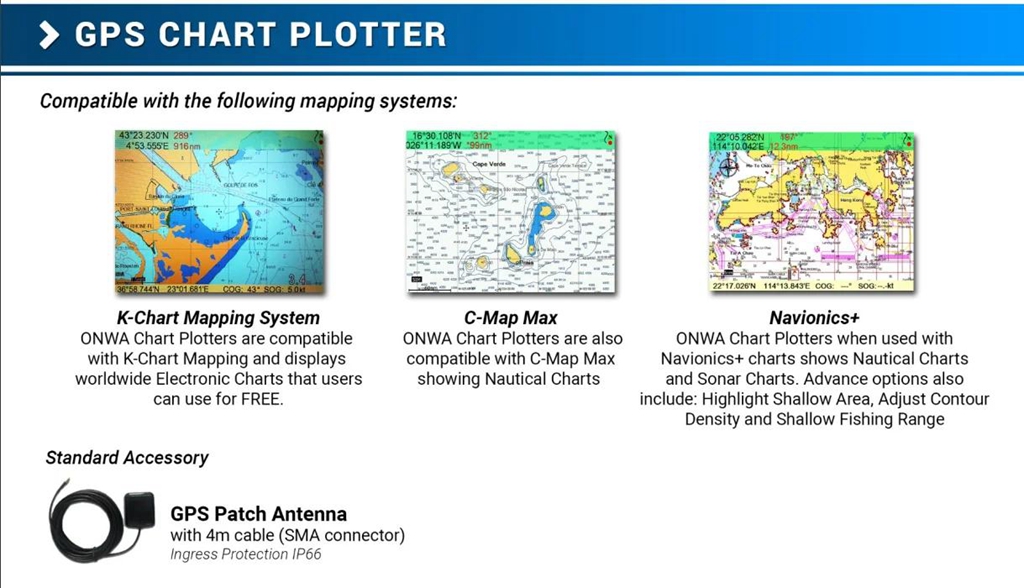 ONWA KP-27F 7-inch LCD Multifunctional Marine GPS Chart Plotter Built-in Fish Finder Support for K-Chart/C-Map