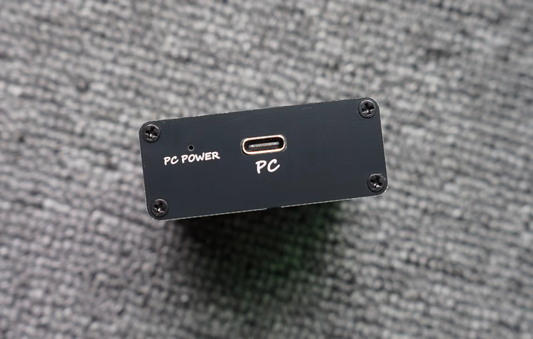 The main body is aluminum, and the front and rear panels use FR4 PCB material. Dimensions: 60 x 50 x 20mm/2.4 x 2 x 0.8" (LxWxThickness).