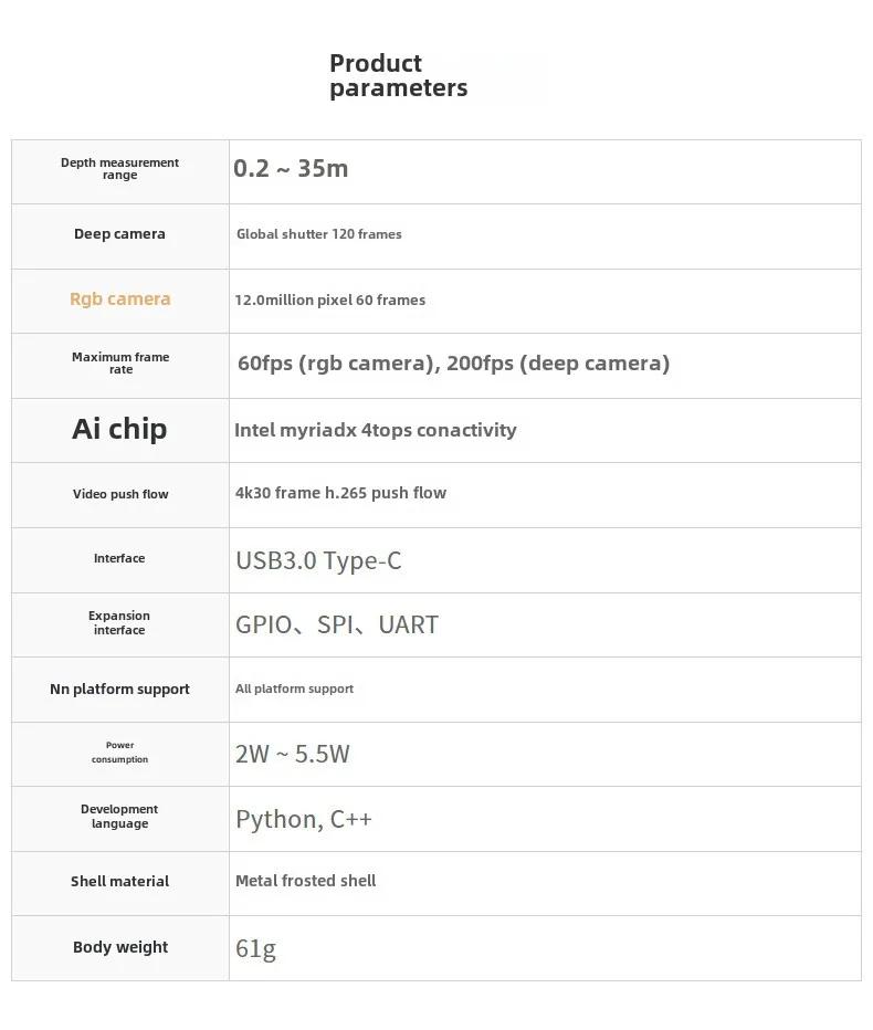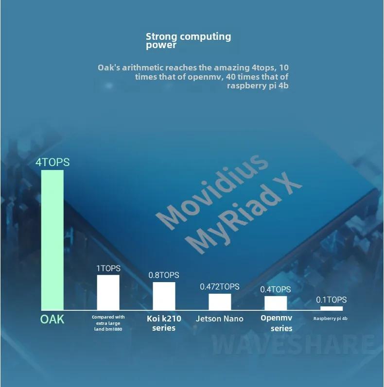 - AI chip: for Intel Myriad X 4TOPS computing power