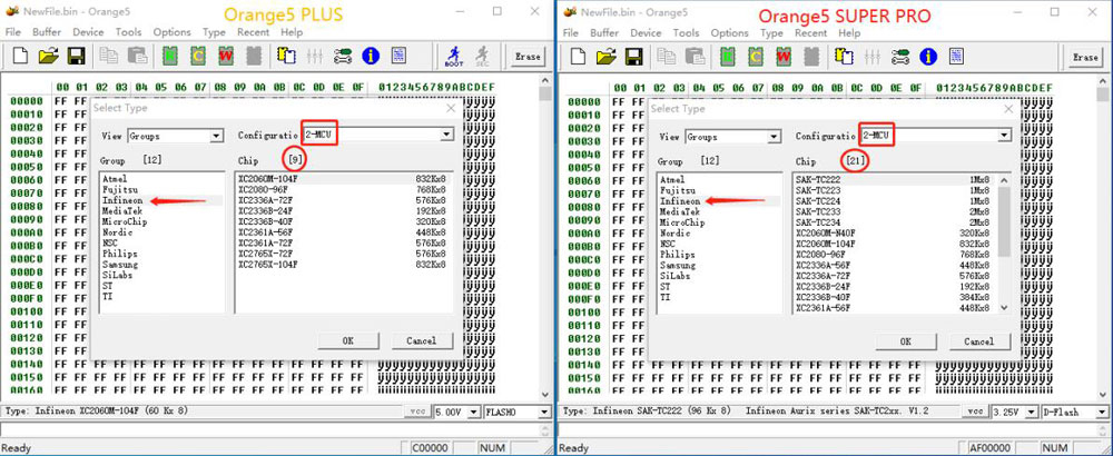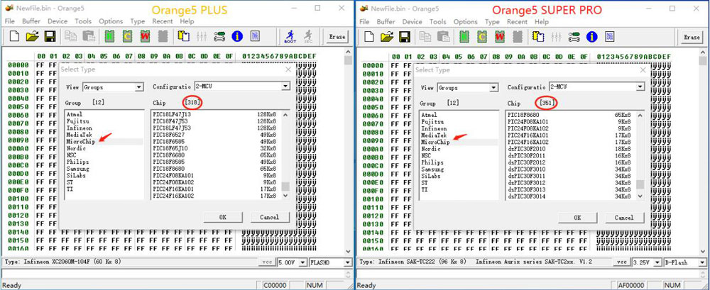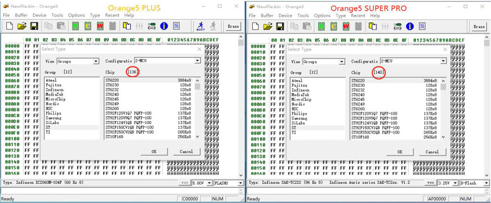 2-MCU, Super Pro has 11 models more than Orange5 Plus