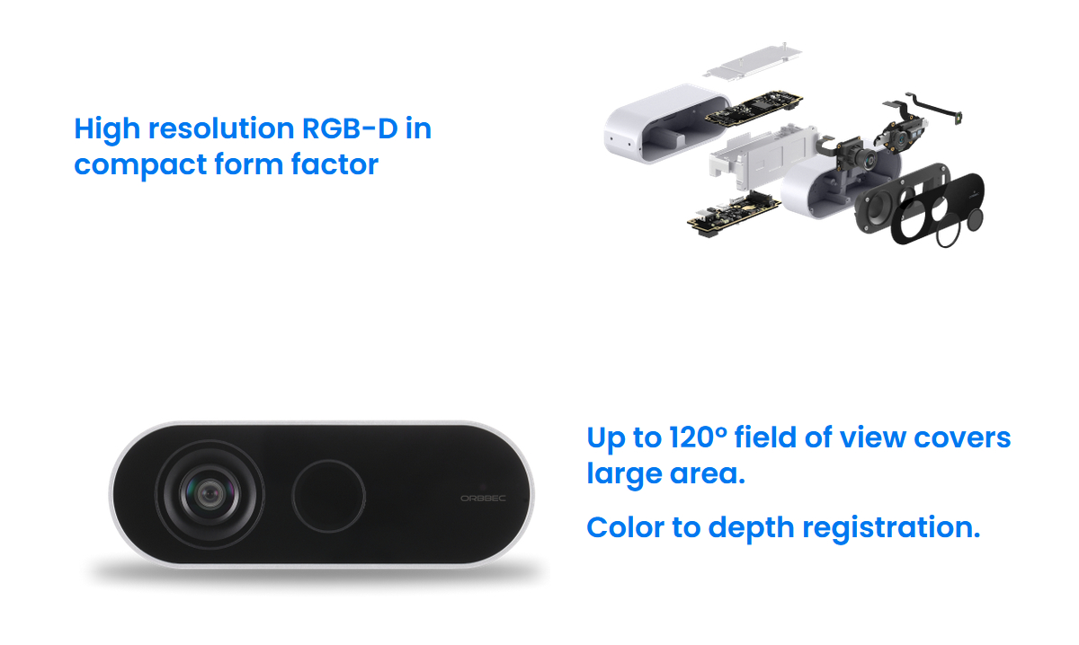 - Depth camera with 1 Mega Pixel ToF sensor and 120° FOV