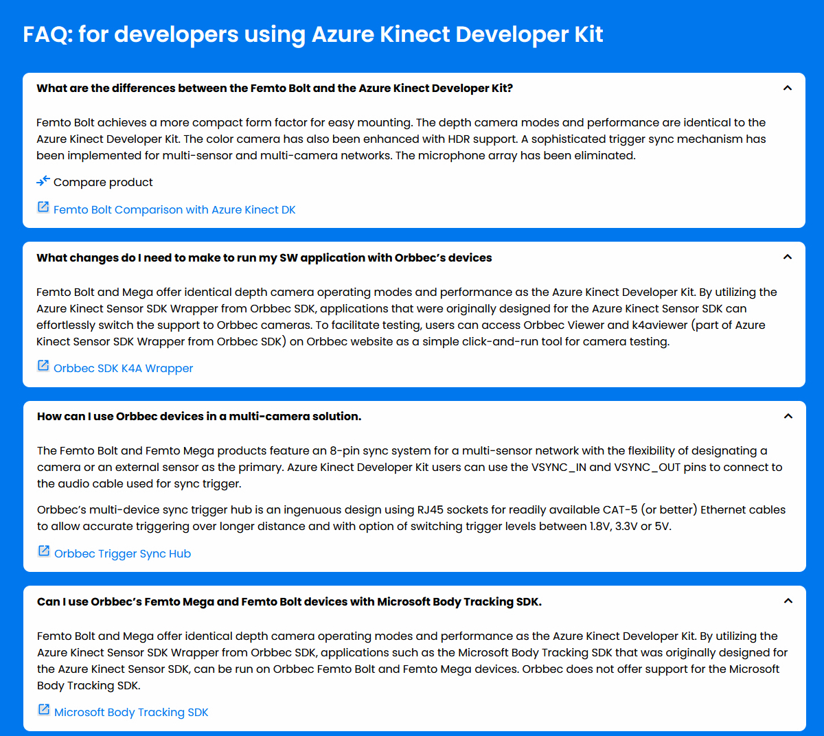 Head over to the Quick-Start Development Library for a swift transition from Azure Kinect DK to Femto Bolt. Follow the tutorials, Azure Kinect Sensor SDK APIs, and Azure Kinect Body Tracking demos to streamline the adoption of Femto Bolt.