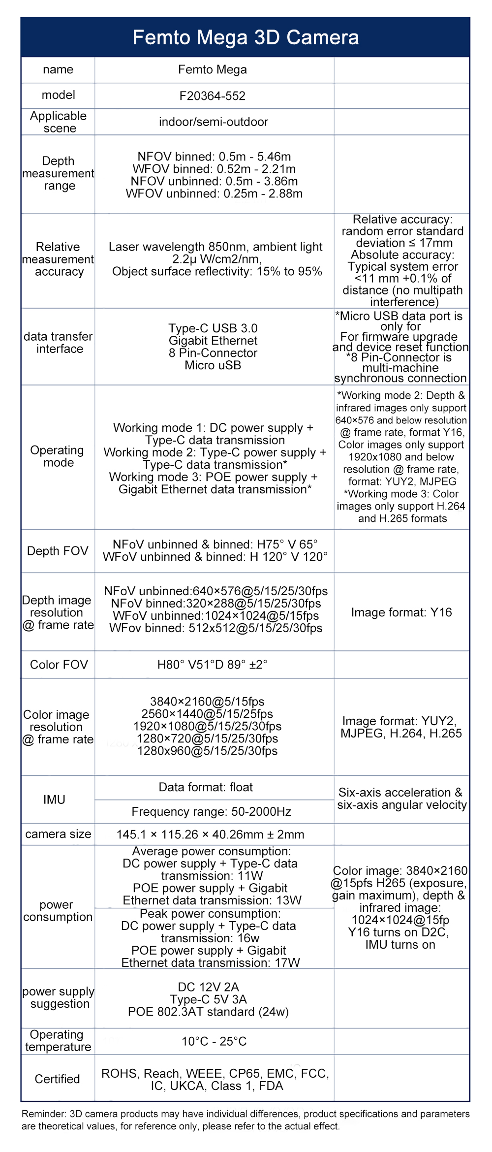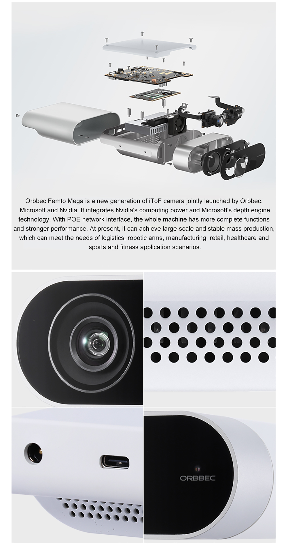 ORBBEC Femto Mega iToF 3D Depth Camera with POE Network Interface and Large FOV Field of View 4K RGB