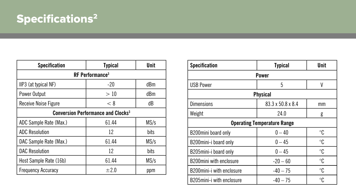 3 Additional RF and digitizer specifications can be found on the ADI 9364 data sheet. http://www.analog.com/media/en/technical-documentation/data-sheets/AD9364.pdf