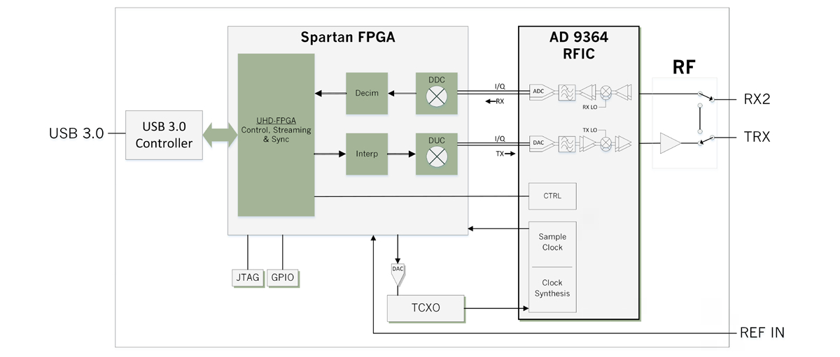 * GNU Radio support maintained through GR-UHD, an interface to UHD distributed by GNU Radio