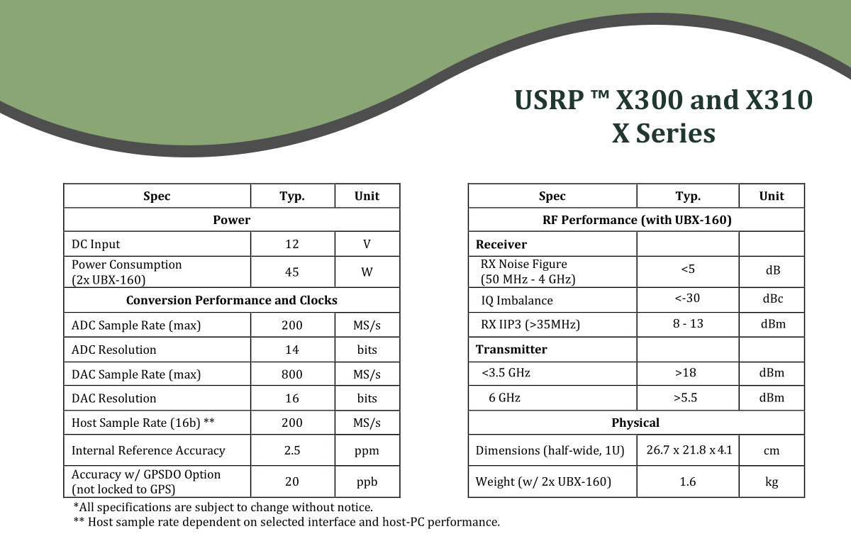 The USRP X310 is a high-performance, scalable software-defined radio (SDR) platform for designing and deploying next-generation wireless communications systems. The hardware architecture combines two extended-bandwidth daughterboard slots covering DC – 6 GHz with up to 160 MHz of baseband bandwidth, multiple high-speed interface options (PCIe, dual 10 GigE, dual 1 GigE), and a large user-programmable Kintex-7 FPGA in a convenient desktop or rack-mountable half-wide 1U form factor. In addition to providing best-in-class hardware performance, the open source software architecture of X310 provides cross-platform UHD driver support making it compatible with a large number of supported development frameworks, reference architectures, and open source projects.