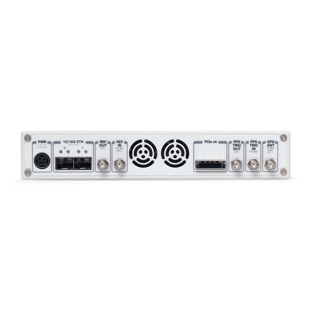 The USRP X310 provides multiple interface options. Out of the box, 1 GigE provides a convenient way to get started. For extended bandwidth and lower latency applications such as PHY/MAC research, PCIe x4 provides an efficient bus for deterministic operation. Applications using network recorders or multiple processing nodes can be best served by the 10 GigE interface option.