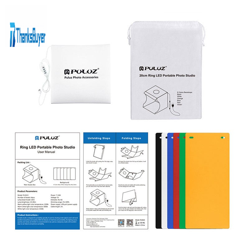 Photo Tent Box Portable Photo Studio Light Box Kit with 6-Color Backgrounds (20cm Ring LED) PU5023