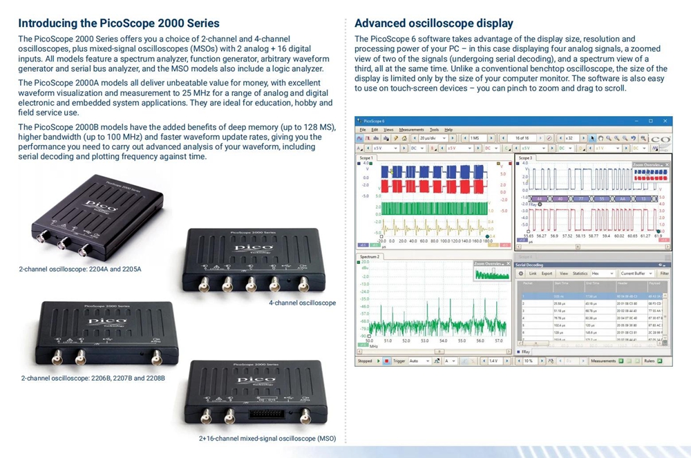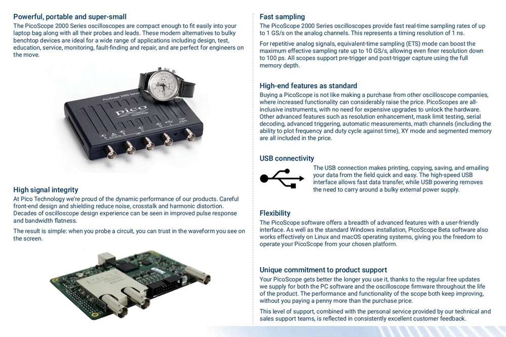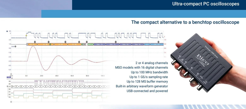 - This PicoScope 2200 Series oscilloscope offers a small, light, modern alternative to bulky benchtop devices. It is perfect for engineers on the move and ideal for a wide range of applications including design, test, education, service, monitoring, fault finding and repair.