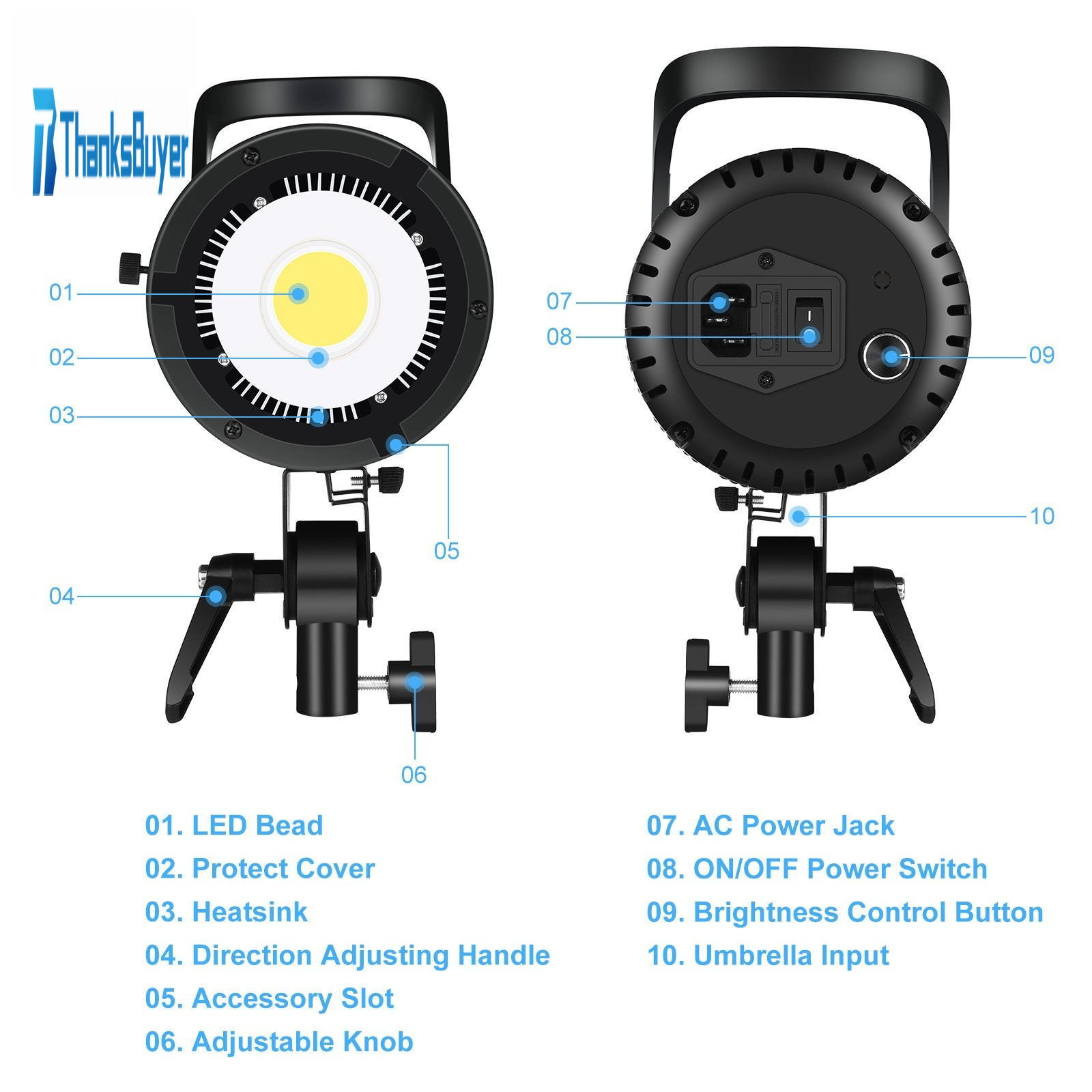 3. Built-in cooling system: Built-in cooling fan, efficient heat dissipation with temperature control protection to extend the lamp bead use time