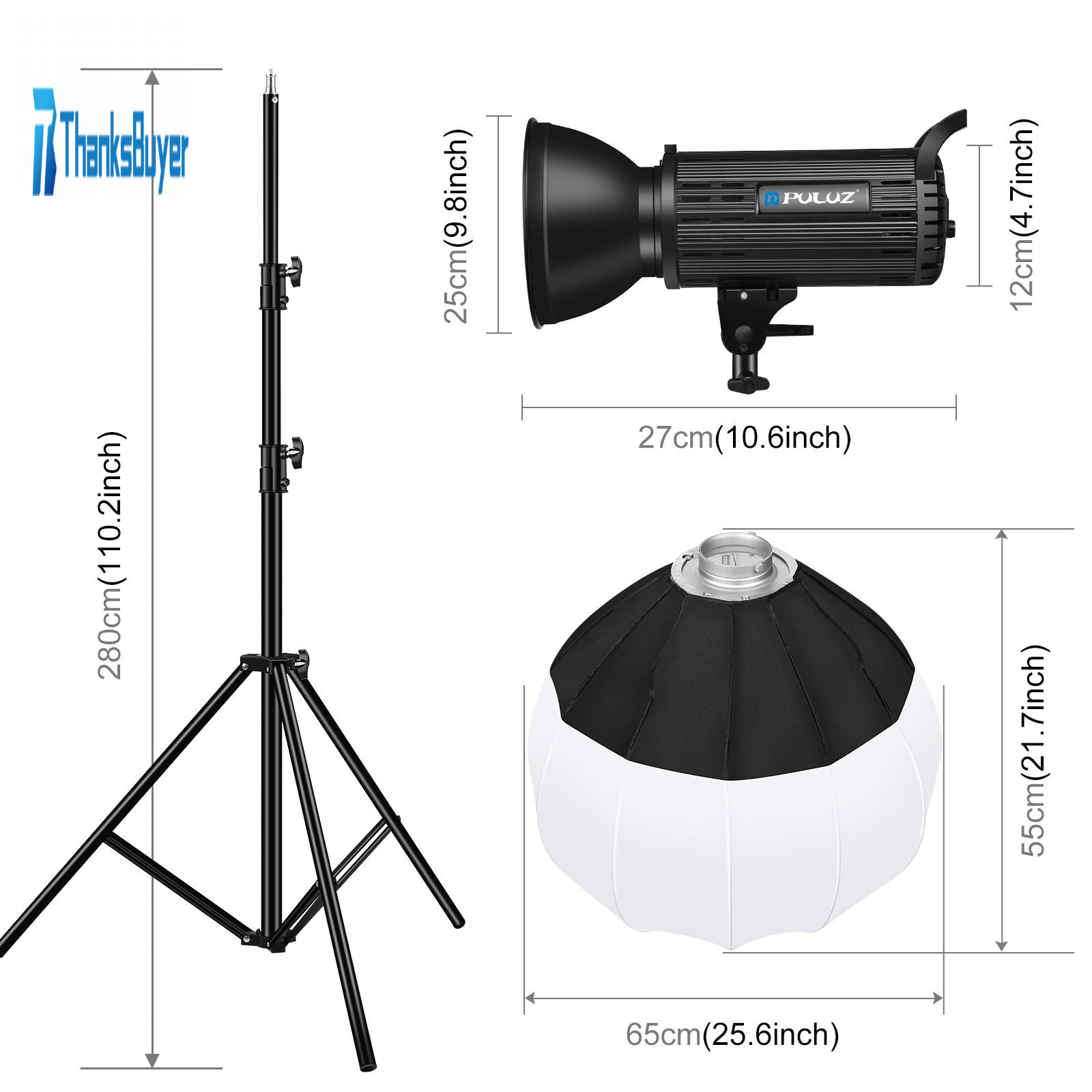 PKT3103 Softbox Lighting PULUZ 150W LED Video Light 5600K + 2.8M Light Holder + 65CM Lantern Softbox