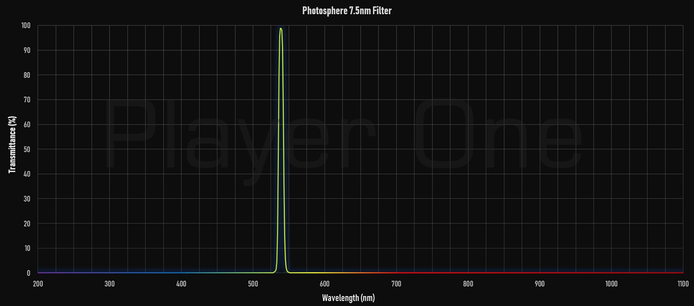 Photosphere filter is an assistant filter and telescopes must use a baader film or an Herschel wedge for adequate reduction of sun light. You can use this filter for imaging. The photosphere filter is a narrowband filter, its CWL is 540nm and the bandwidth is 7.5nm.