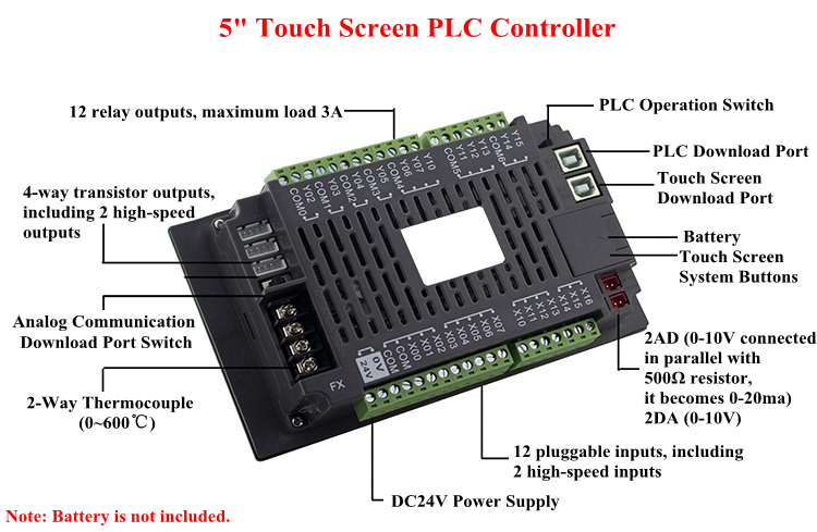 PLC Controller Programmable Logic Controller 5" HMI Touch Screen For Industrial Automation Control