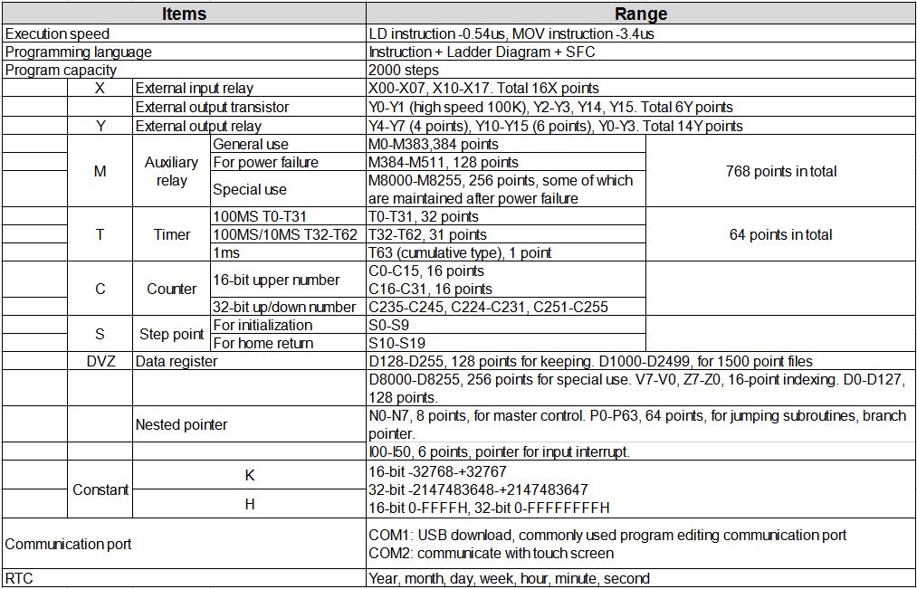 - High-Speed Output: For Mitsubishi version, 2 high-speed outputs Y0, Y1 (100khz).