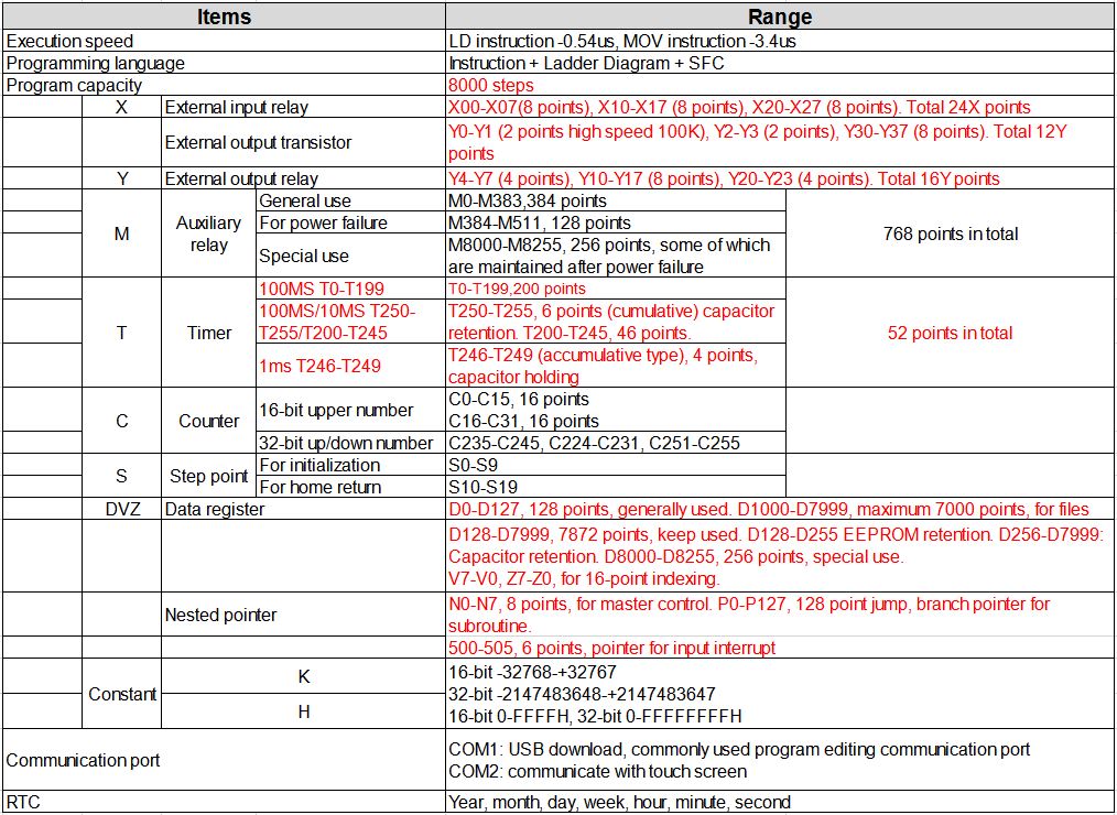 - High-Speed Output: For Mitsubishi version, 2 high-speed outputs Y0, Y1 (100khz).