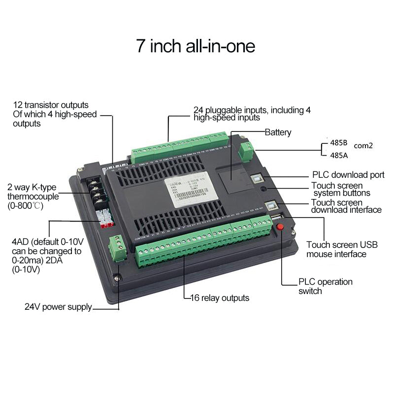 PLC Controller Programmable Logic Controller 7" HMI Touch Screen For Industrial Automation Control