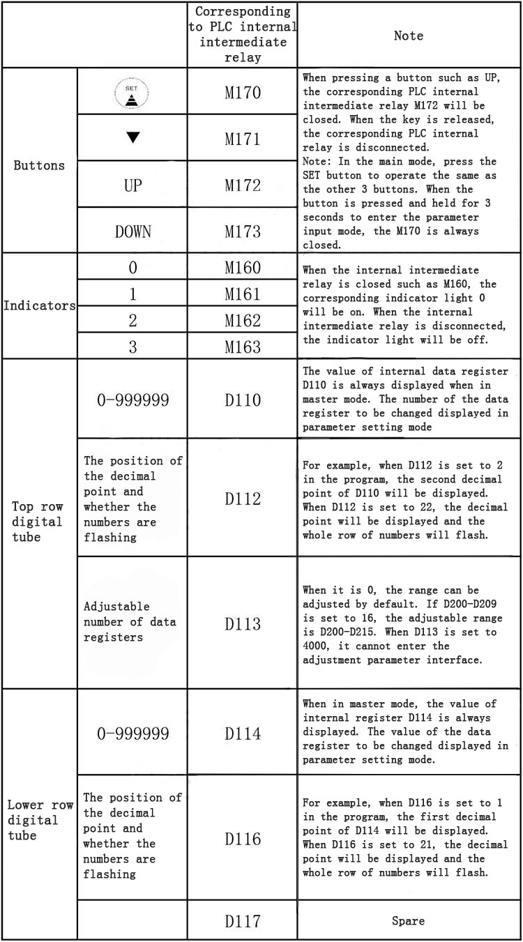 This display board occupies the following resources of PLC, please pay attention to PLC programming: