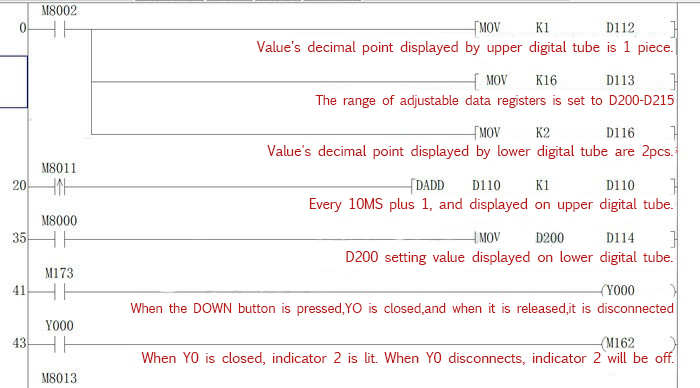 PLC Programmable Logic Controller with Double 0.36" Digital Tubes Display D110 D114 Values