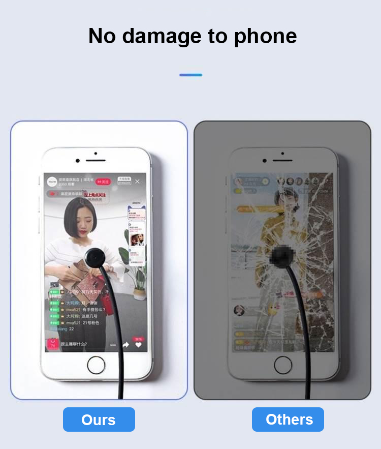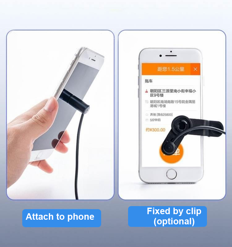 - Two fixing methods: the click head is attached to the mobile phone or fixed by a clip (optional)