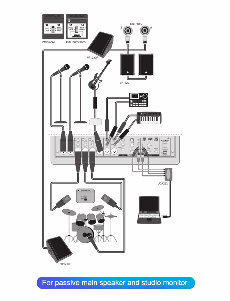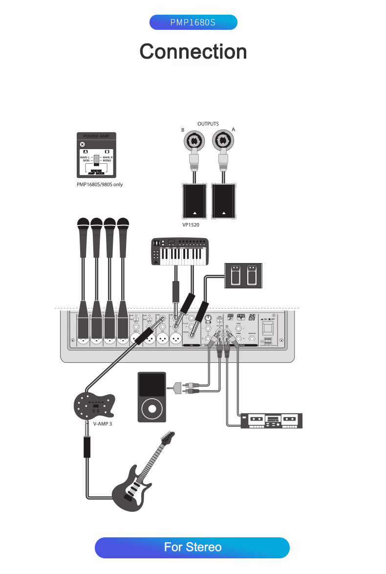The powerful PMP1680S gives you the choice of 2 x 800-Watt stereo, 2 x 800-Watt dual mono, or 1,600-Watt bridged mono output. Whether the center of attention happens to be a folk trio, a speech, or a synth-rock band with mind-boggling stereo patches, the PMP1680S can accommodate with ease. This sonic versatility also makes it an excellent choice for churches, where vocals and stereo recordings often share face time.