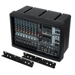 - Ultra-compact rack-mountable 2 x 800-Watt stereo powered mixer (1600-Watt bridged mode)
