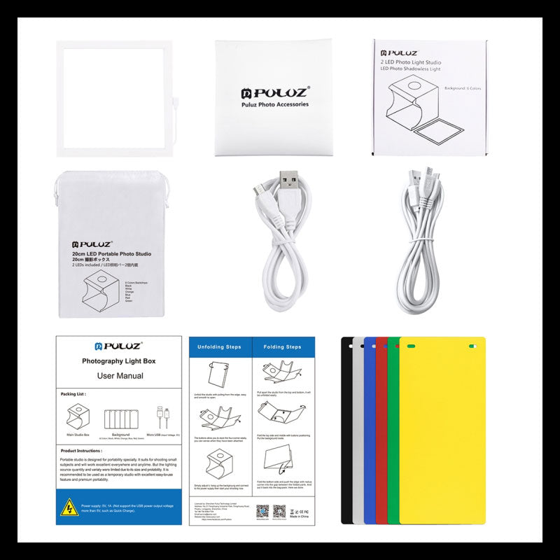 Portable Light Box Photo Shooting Tent Kit w/ Shadowless Bottom Light Effective Area 20x20cm PU5137