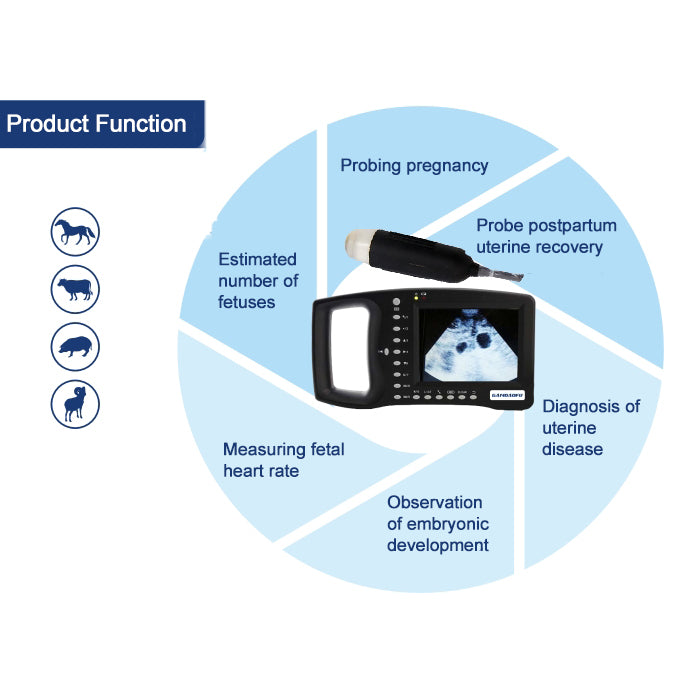 GDF-A4 is a practical veterinary B-ultrasound diagnostic system. Its embedded operation system greatly improves the product performance, achieving stronger data process ability and fast process speed. Pop-up menu and keyboard design bring more convenient to users. The device is applicable to the measurement and calculation of the obstetric for sheep, cat, dog and other animals.