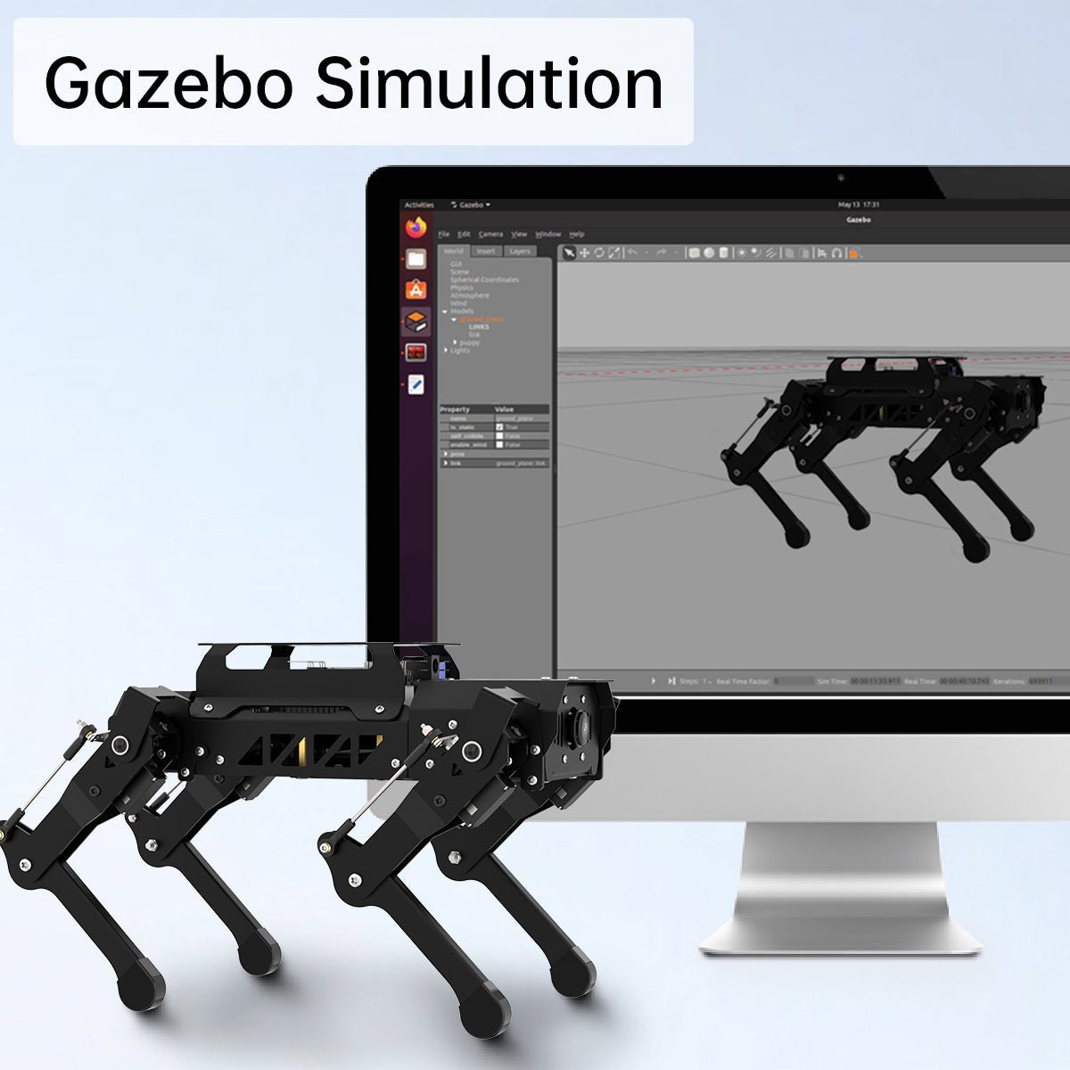 - PuppyPi adopts ROS framework and supports Gazebo simulation. Gazebo brings a fresh approach for you to control PuppyPi and verify the algorithm in simulated environment, which reduces experimental requirements and improves efficiency.