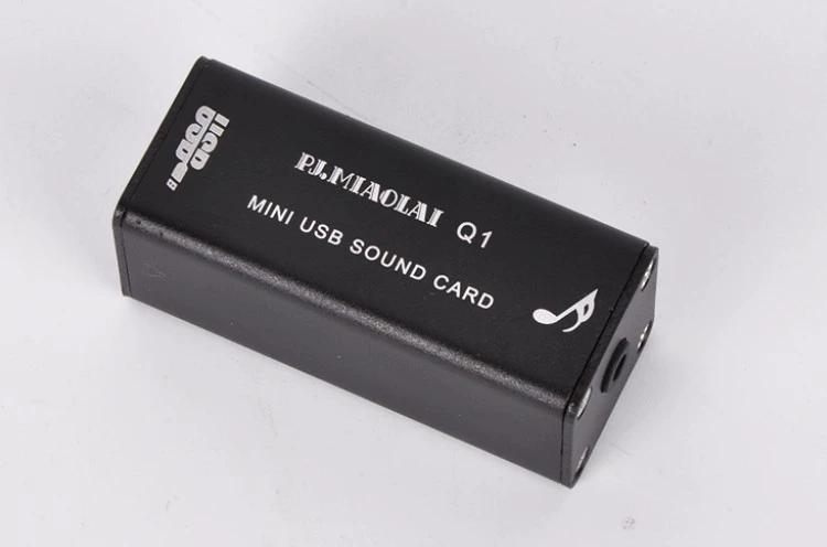 - The main chip of Q1 digital sound card adopts the classic PCM2704 USB decoding chip for BB. It is directly connected to a computer via USB cable, and the output terminal (3.5 audio output) is directly connected to multimedia speakers, headphones or amplifiers and other audio equipment.