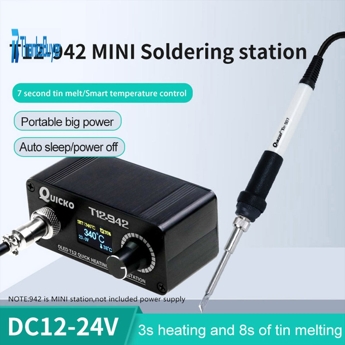 QUICKO T12-942 Mini OLED T12 Solder Station Kit with T12-K Soldering Tip & 907 Soldering Handle