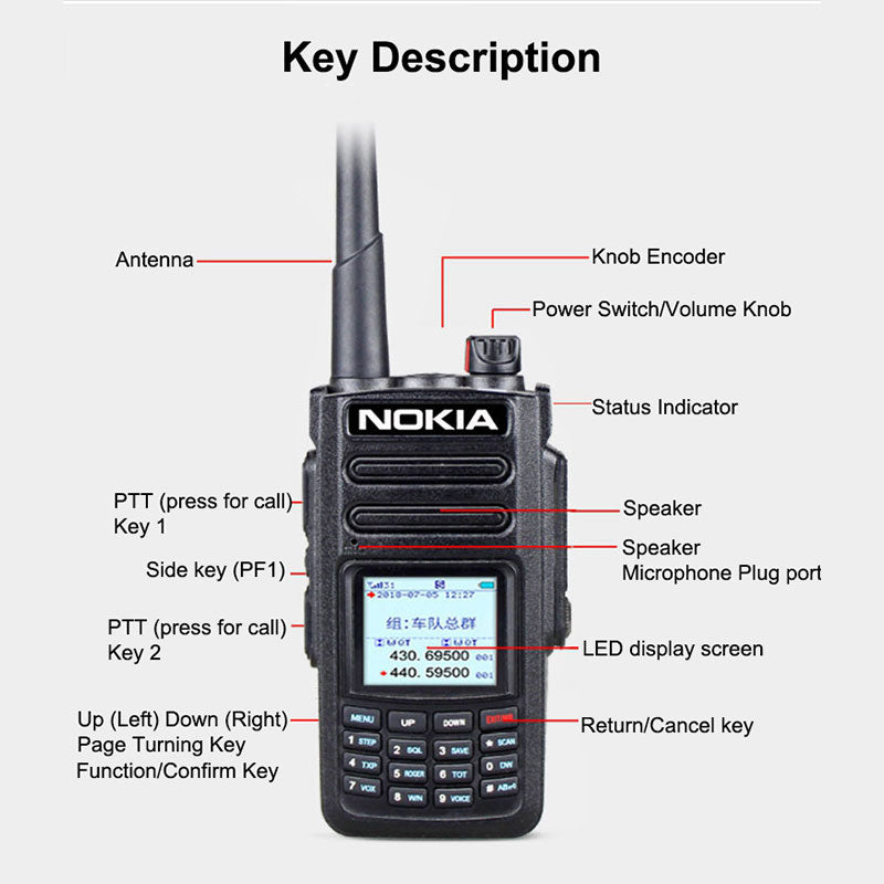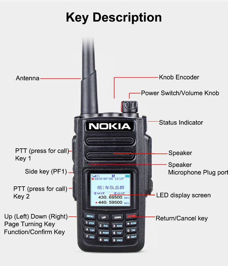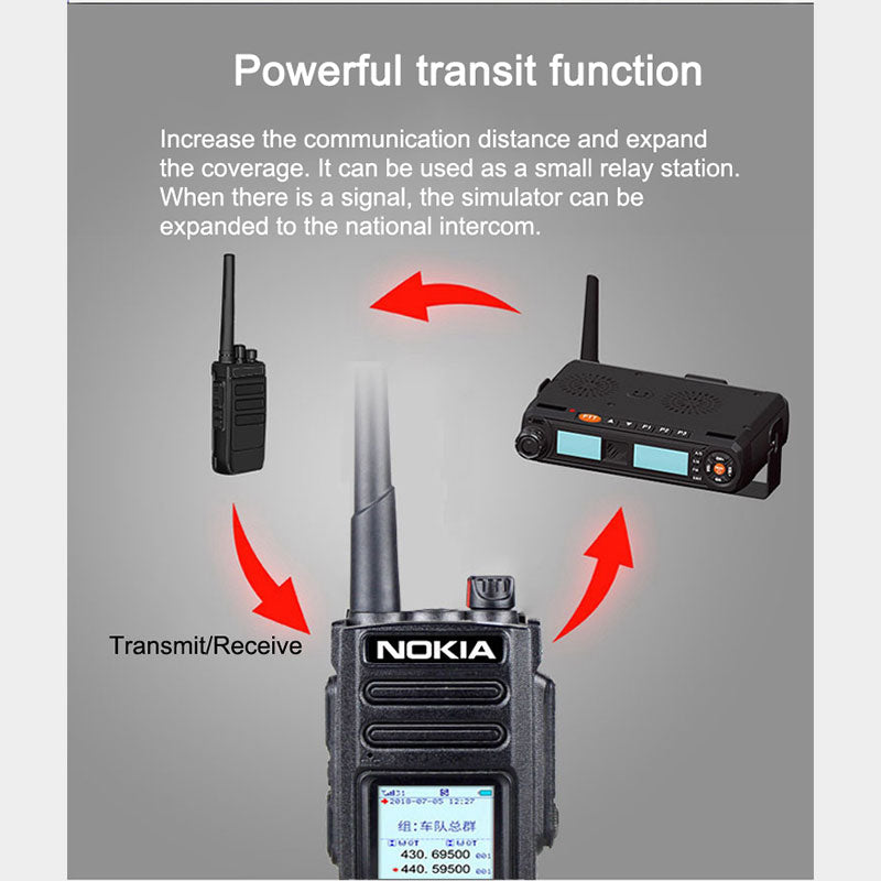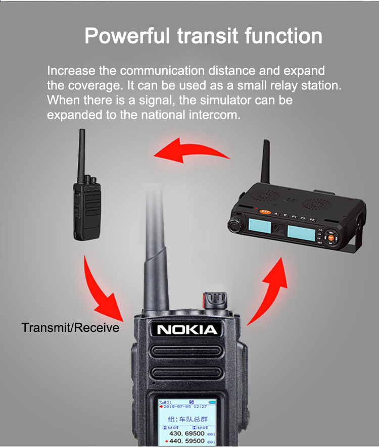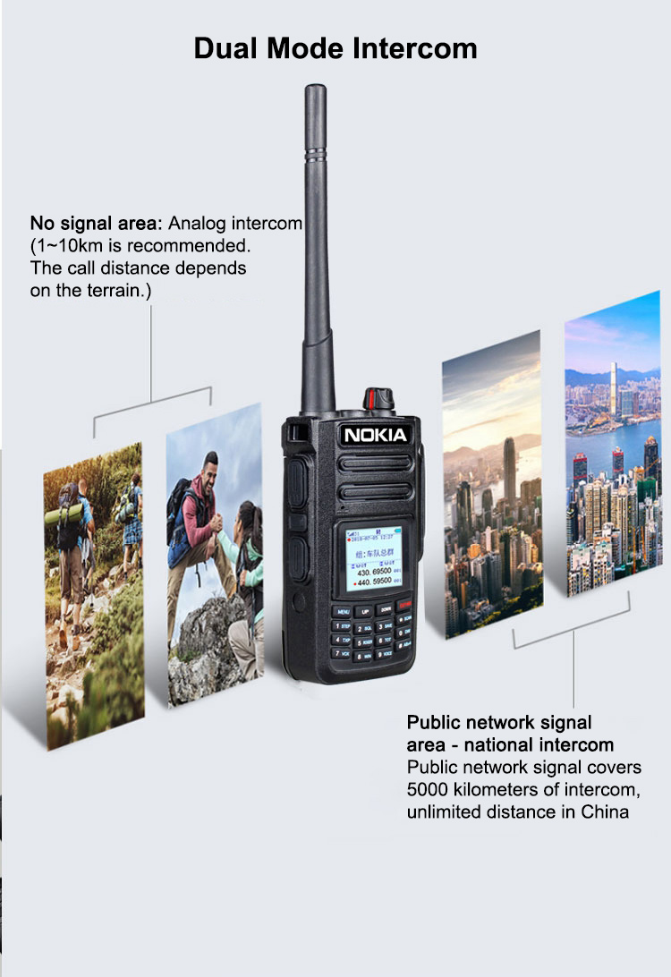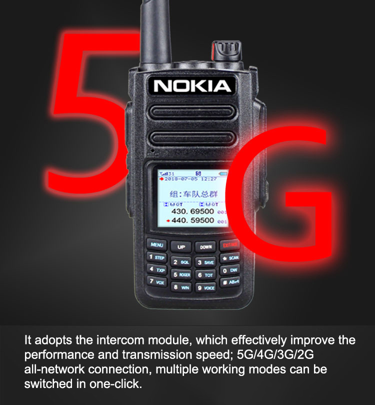 - Features: 5G/4G/3G/2G network free switching, analog FM intercom, national intercom, unlimited distance, dual-mode and dual-switching, transfer function, voice raising, low power alarm, Chinese and English alarm, alarming, monitoring, clear display of noise reduction, group function, digital shortcut dialing single call.