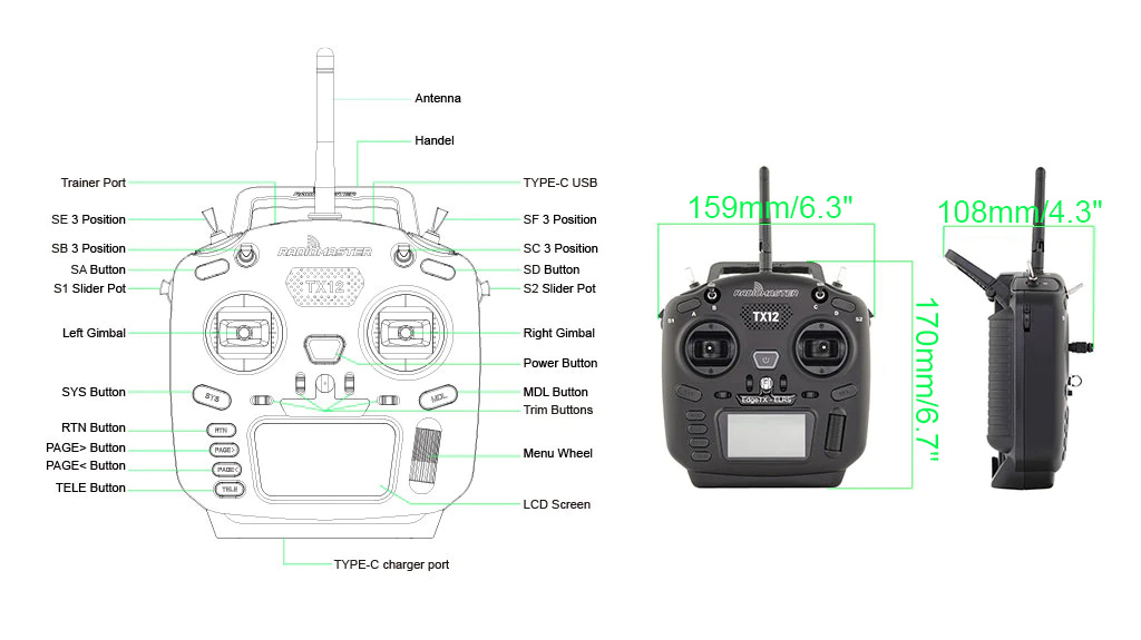 Radiomaster TX12 Mark II RC Controller Remote Controller ELRS with Right Hand Throttle for Drones