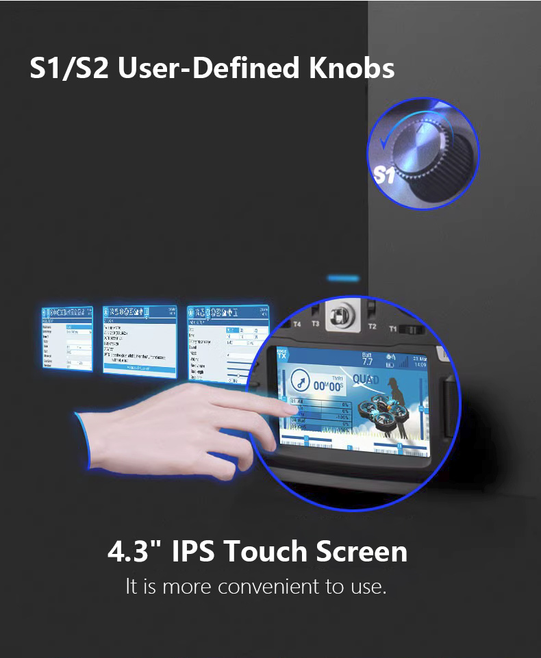- Gimbal: V4.0 Hall joystick (can be upgraded to AG01 Hall joystick)