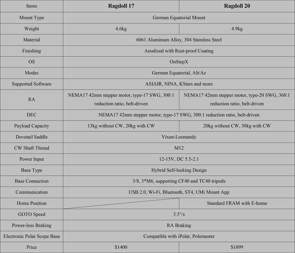 Ragdoll20 Super Version Harmonic Equatorial Mount Support Standard FRAM with E-home Compatible with iPolar/PoleMaster