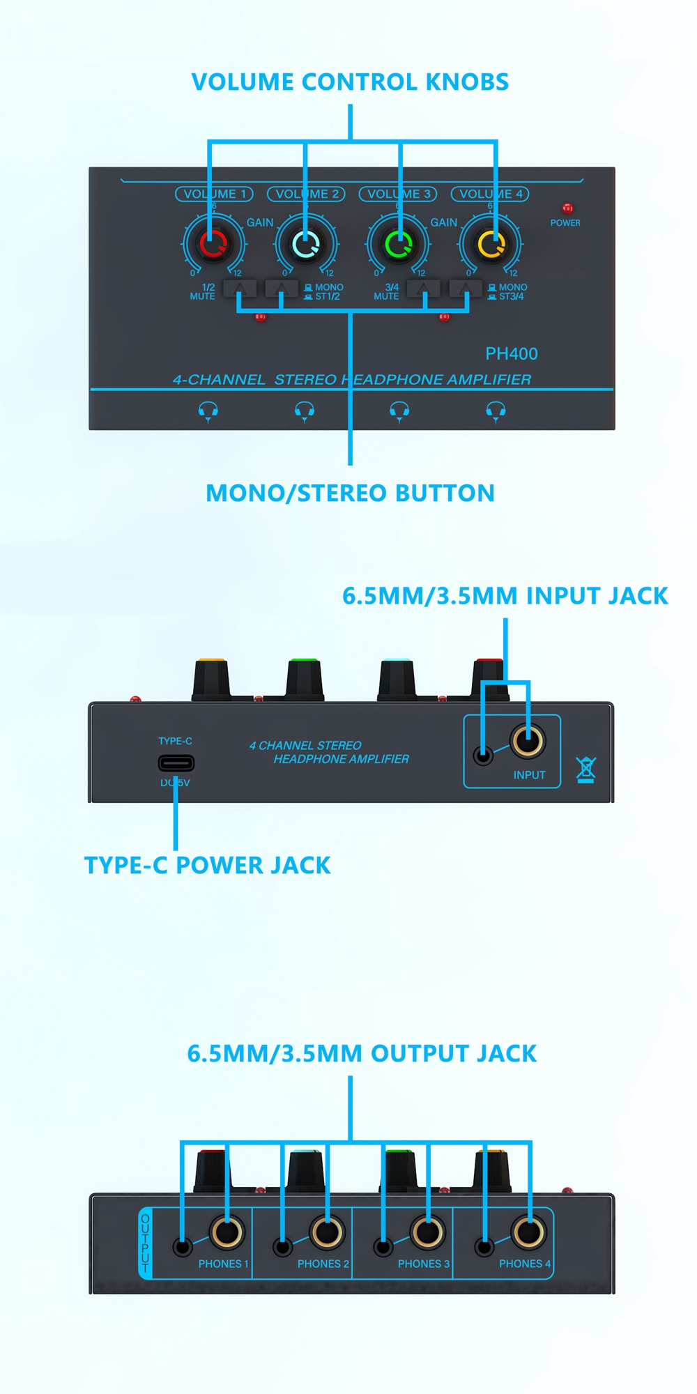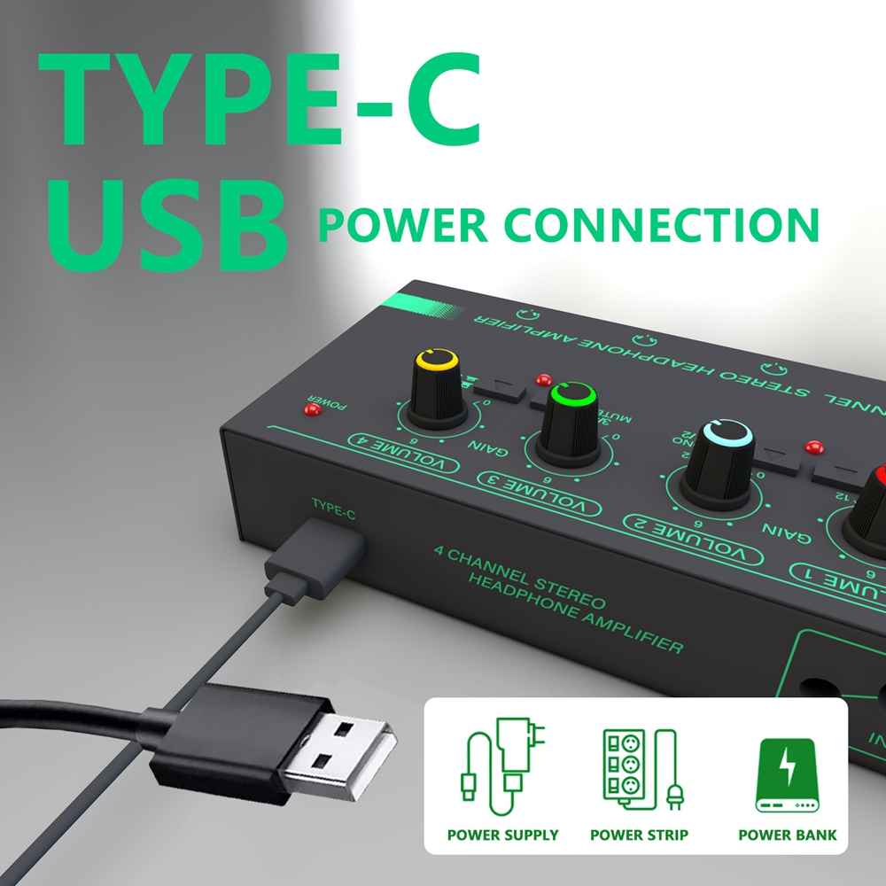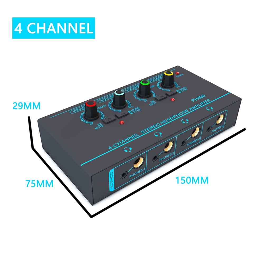Recordio Green GAX-PX400 4-Channel Stereo Ultra-low Noise Headphone Amplifier with Mutual Non-interference Jack
