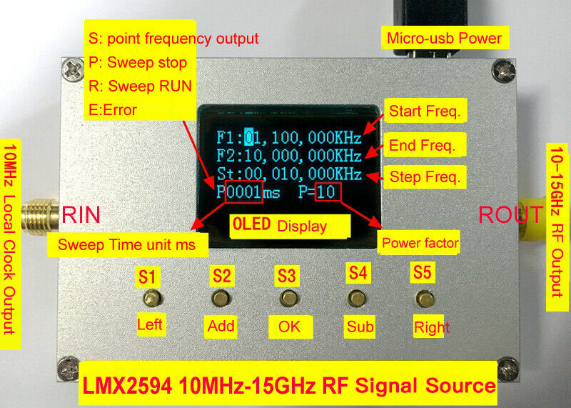 RF Signal Generator Frequency Generator 10MHz-15GH On-chip Amplitude Control Frequency Sweep LMX2594