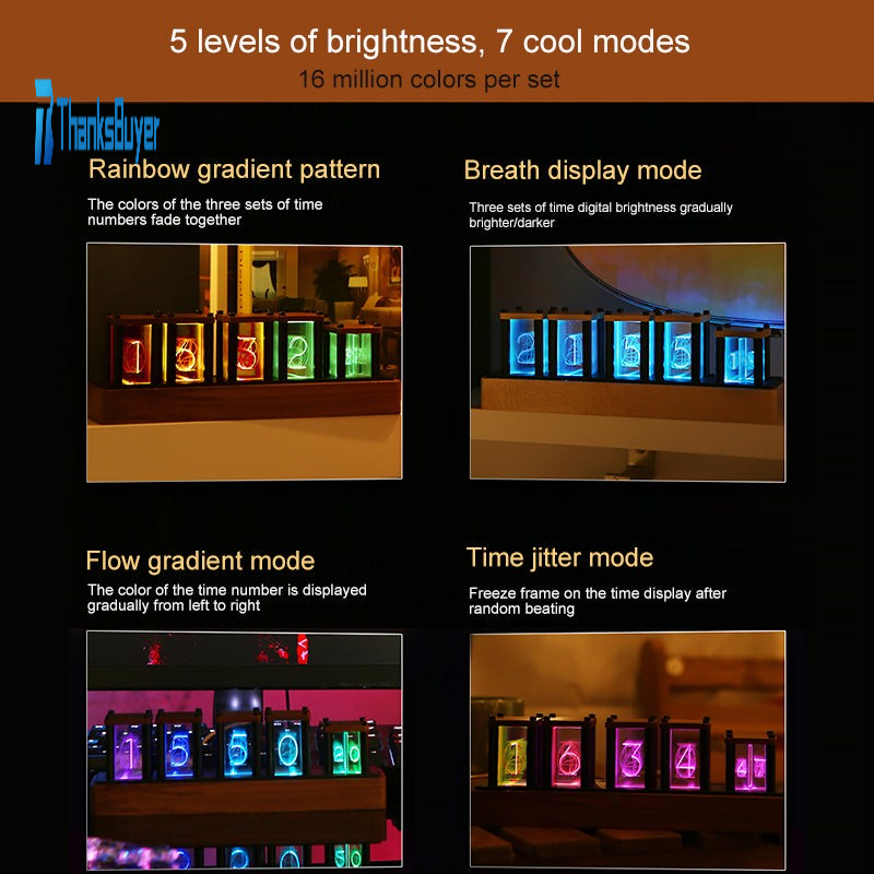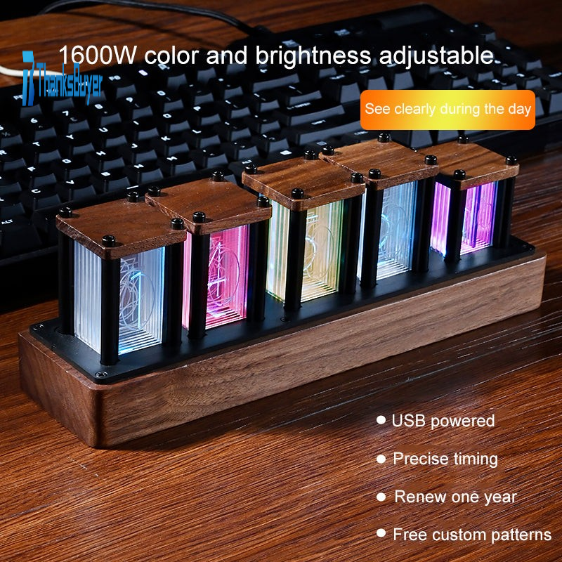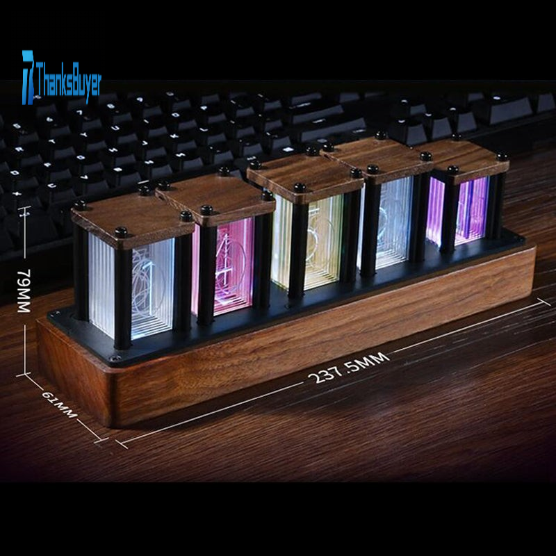 RGB Clock LED Pseudo Glow Tube Clock Black Walnut Wood DIY Kit Wonderful Birthday Present For Friend