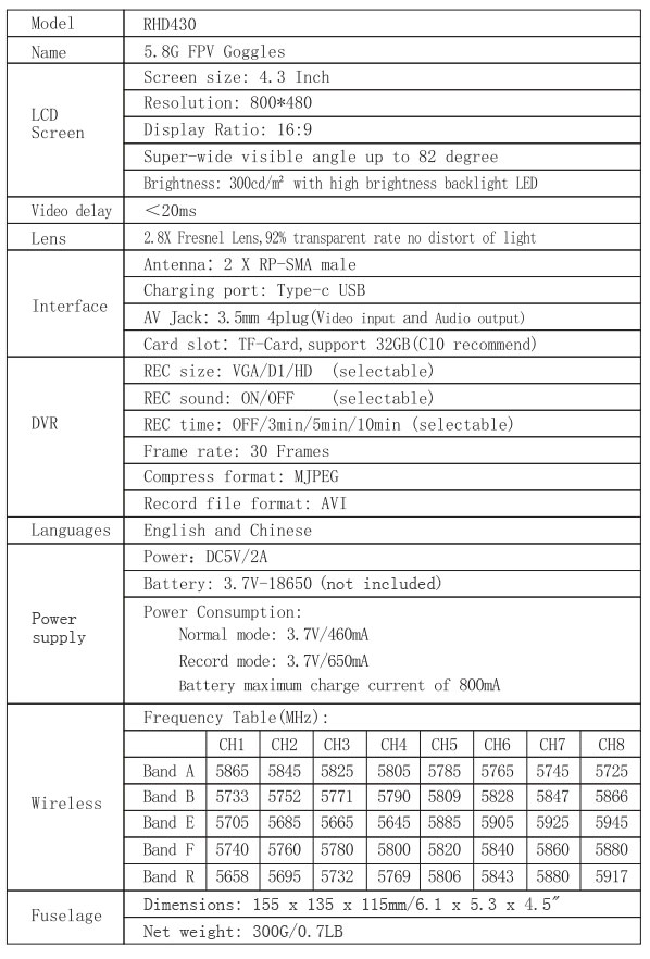 RHD430 5.8G Drone FPV Goggles w/ 4.3" Screen DVR Functions Dual Receiving Modules for Stable Signal