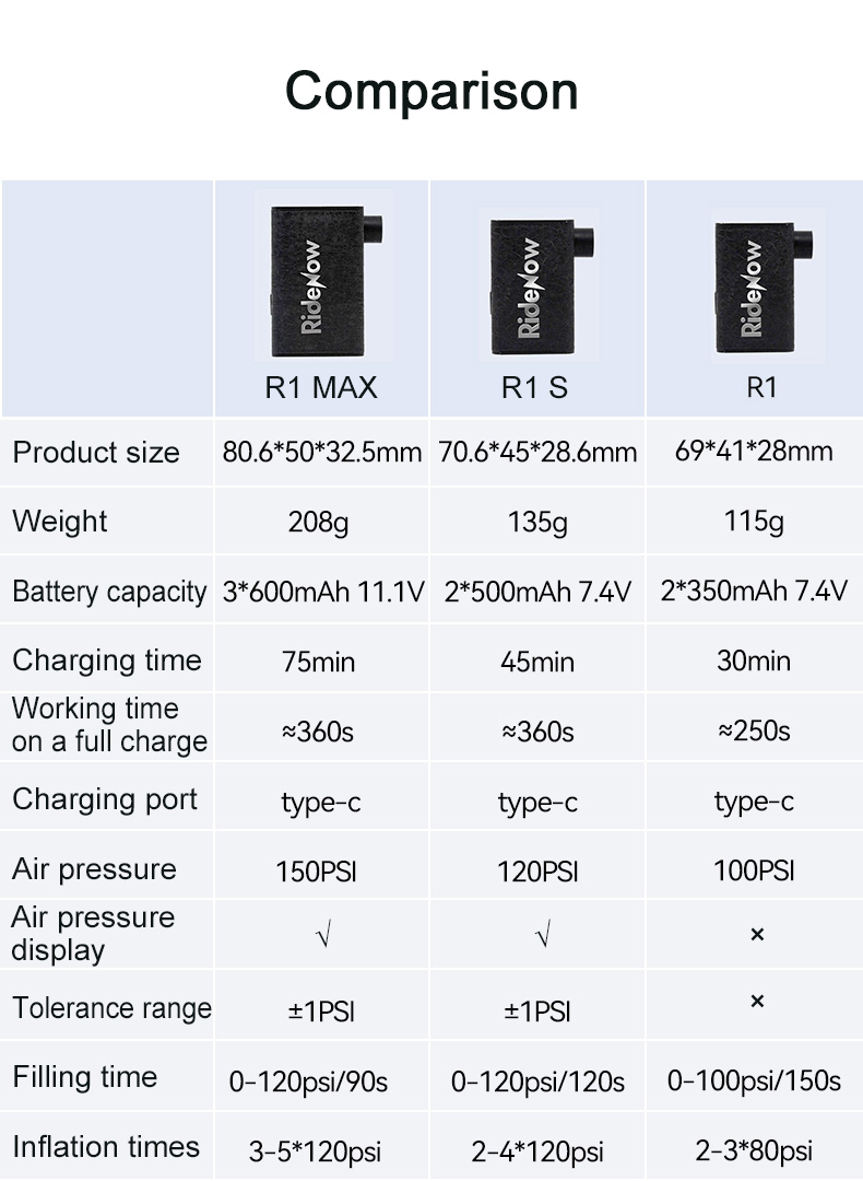 - Mini air pump: Full power, long battery life and 7.4V fast inflation. Up to 120PSI.
