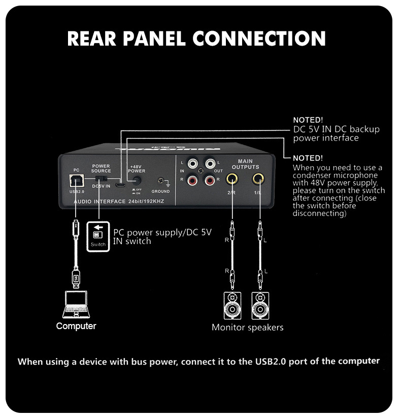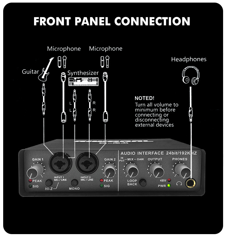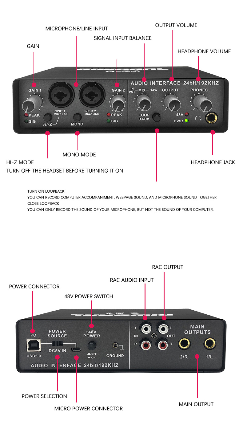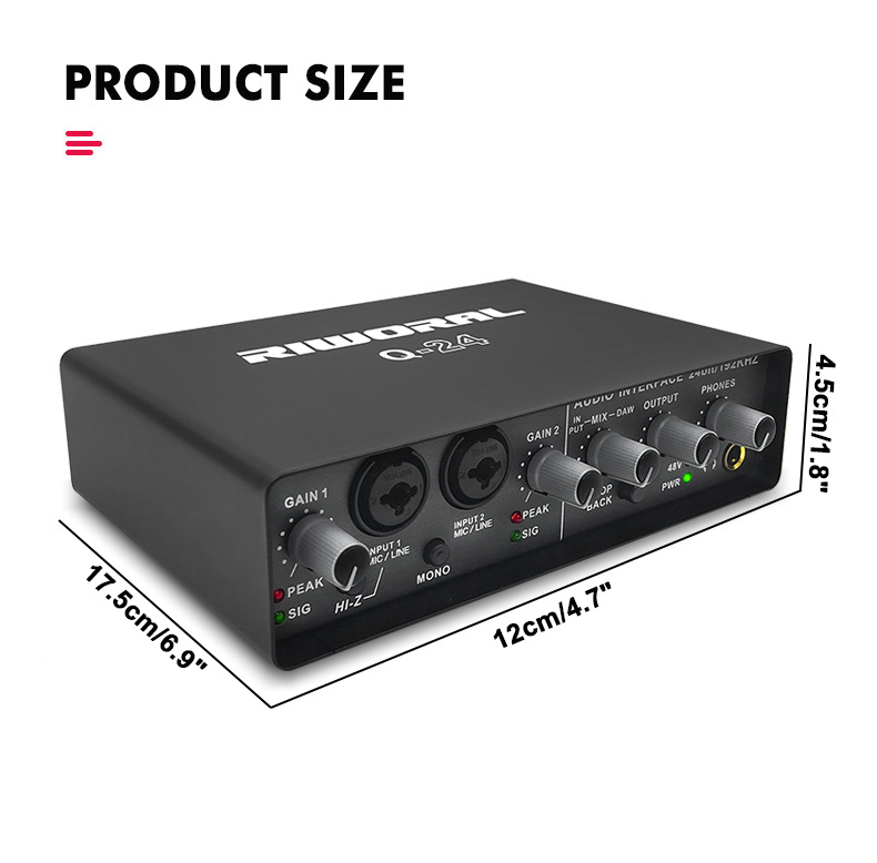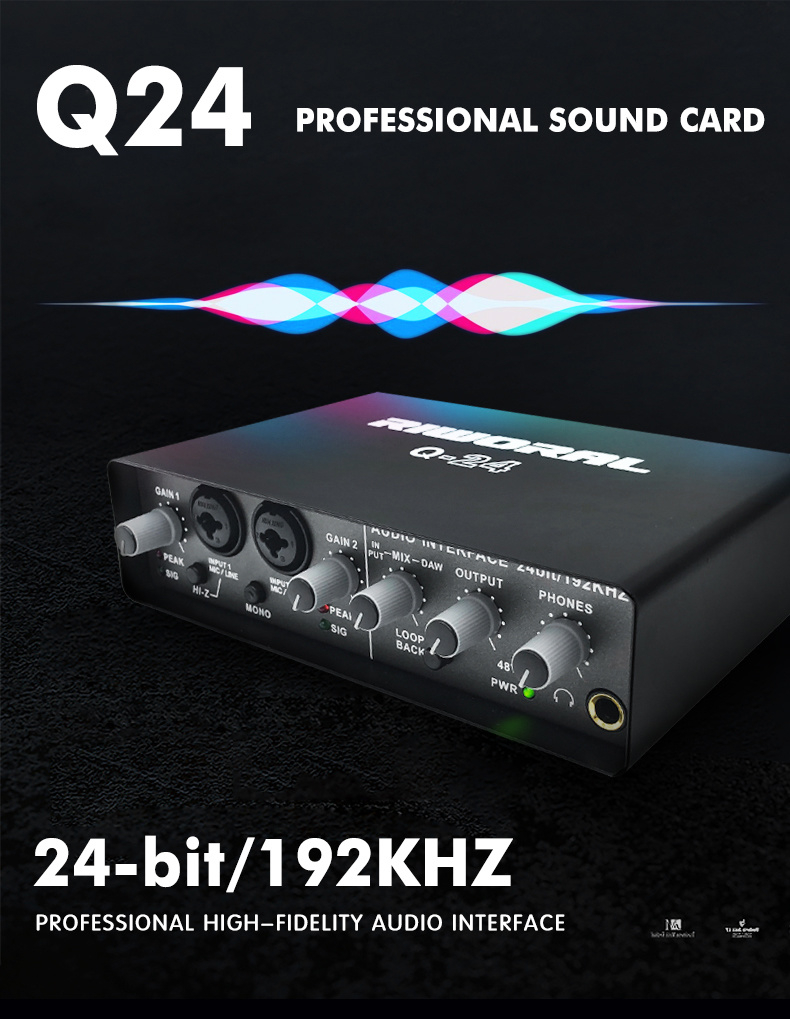RIWORAL Q-24 Professional High-Fidelity Audio Interface 24bit/192KHz Q24 Small External Sound Card