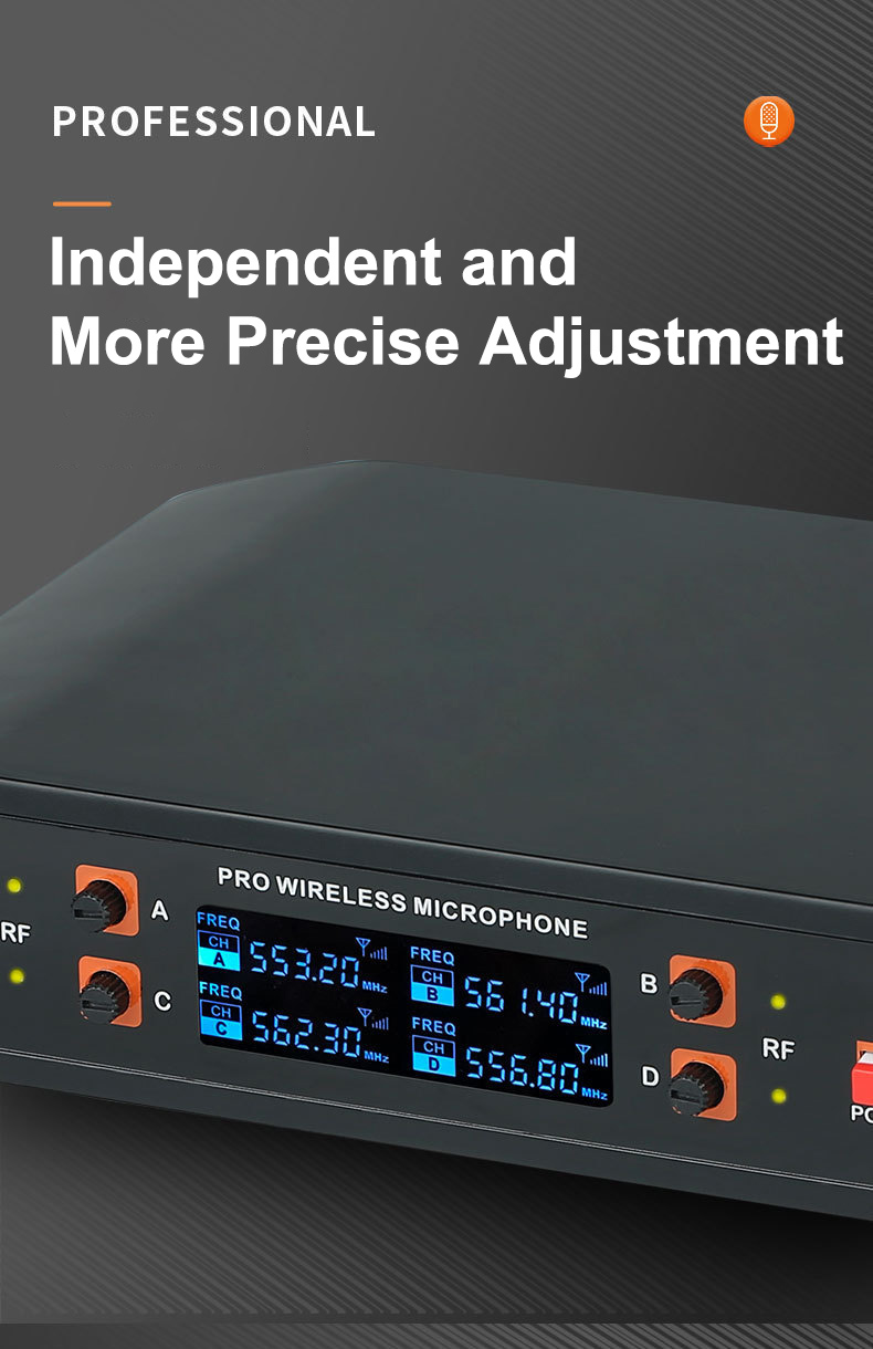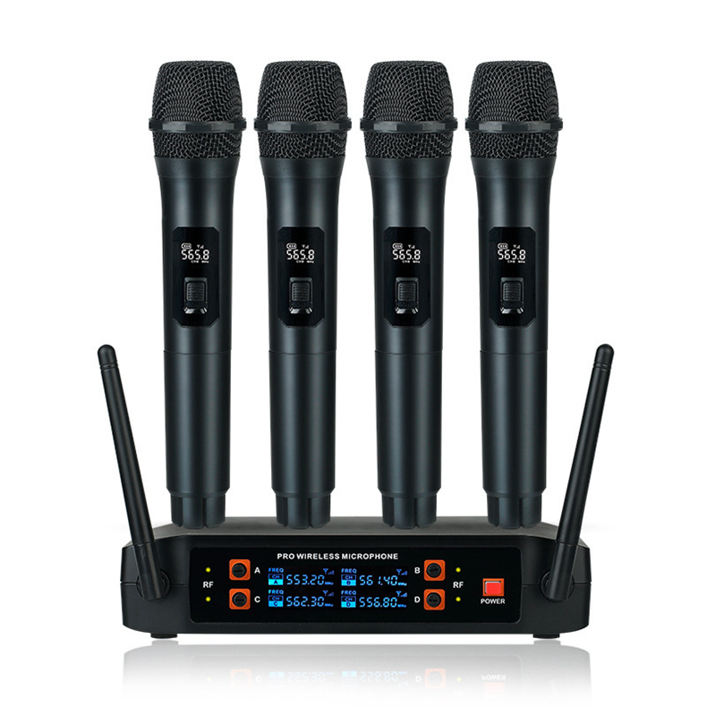RK-148 Pro Wireless Microphone System with 4 Cordless Microphones for Speakers KTV Karaoke Meeting