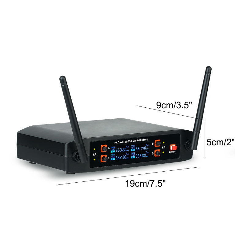 - Size of receiver (excluding the size of antennas): 19 x 9 x 5cm/7.5 x 3.5 x 2" (LxWxH)