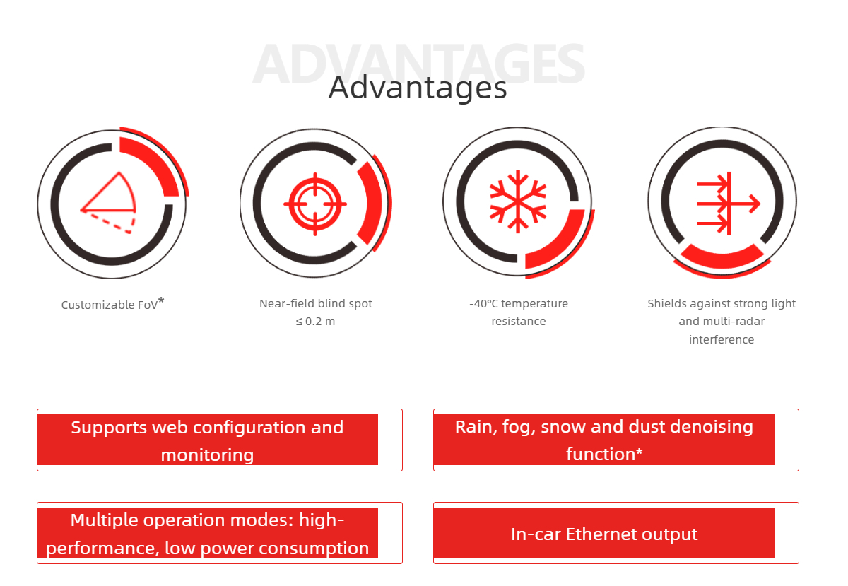 * 70° Ultra-wide Vertical FoV: Addresses both perception and blind spot detection needs, simplifying on-board sensor placement.