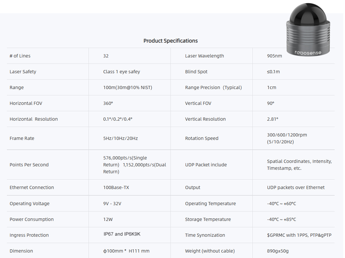 RoboSense RS-Bpearl 32-Line Blind Spot LiDAR Second-hand LiDAR Sensor Module with 100m Range