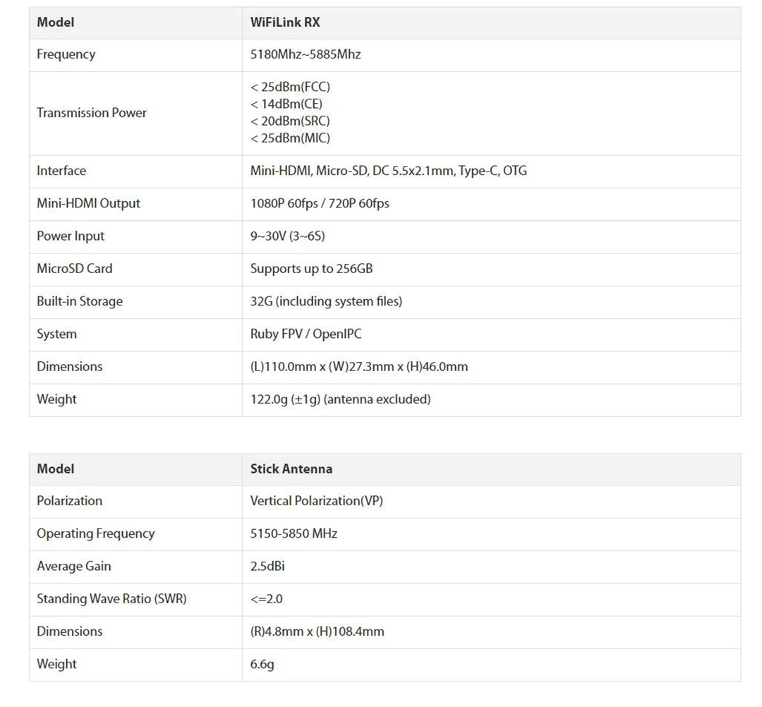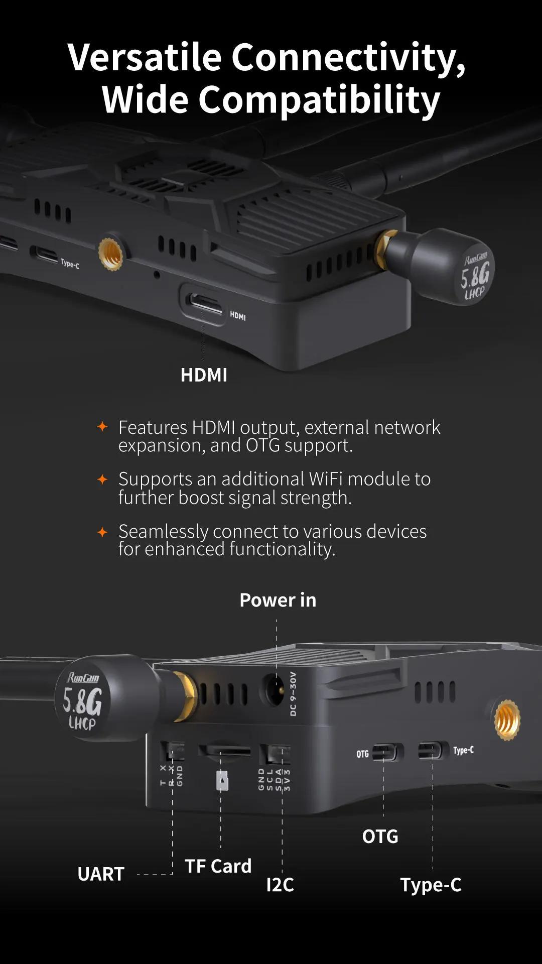 RunCam WiFiLink-RX Digital HD Receiver 1080P 90FPS HDMI-compatible Output Support for OpenIPC/Ruby System VTX