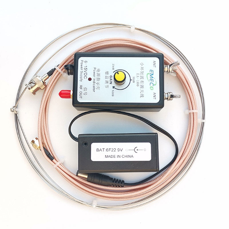 - Install the battery and SMA feeder, round the antenna ring with 2mm diameter and 60cm ring, and fix it in the twist angle screw, and insert the other end of the antenna into the external antenna port of the radio or the antenna input port of the SDR receiver.