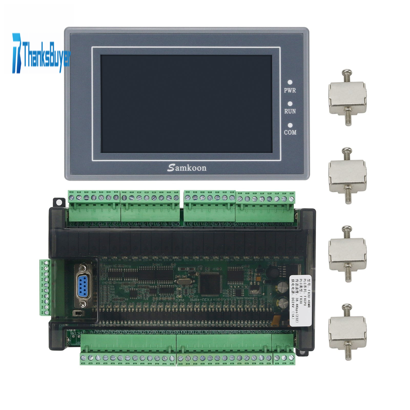 Samkoon EA-043A 4.3" HMI Touch Screen + FX3U-48MR PLC Controller PLC Control Board 6AD 2DA