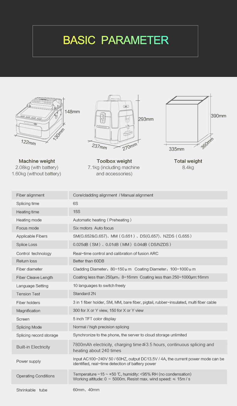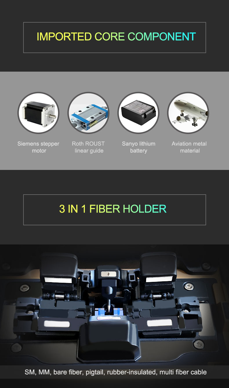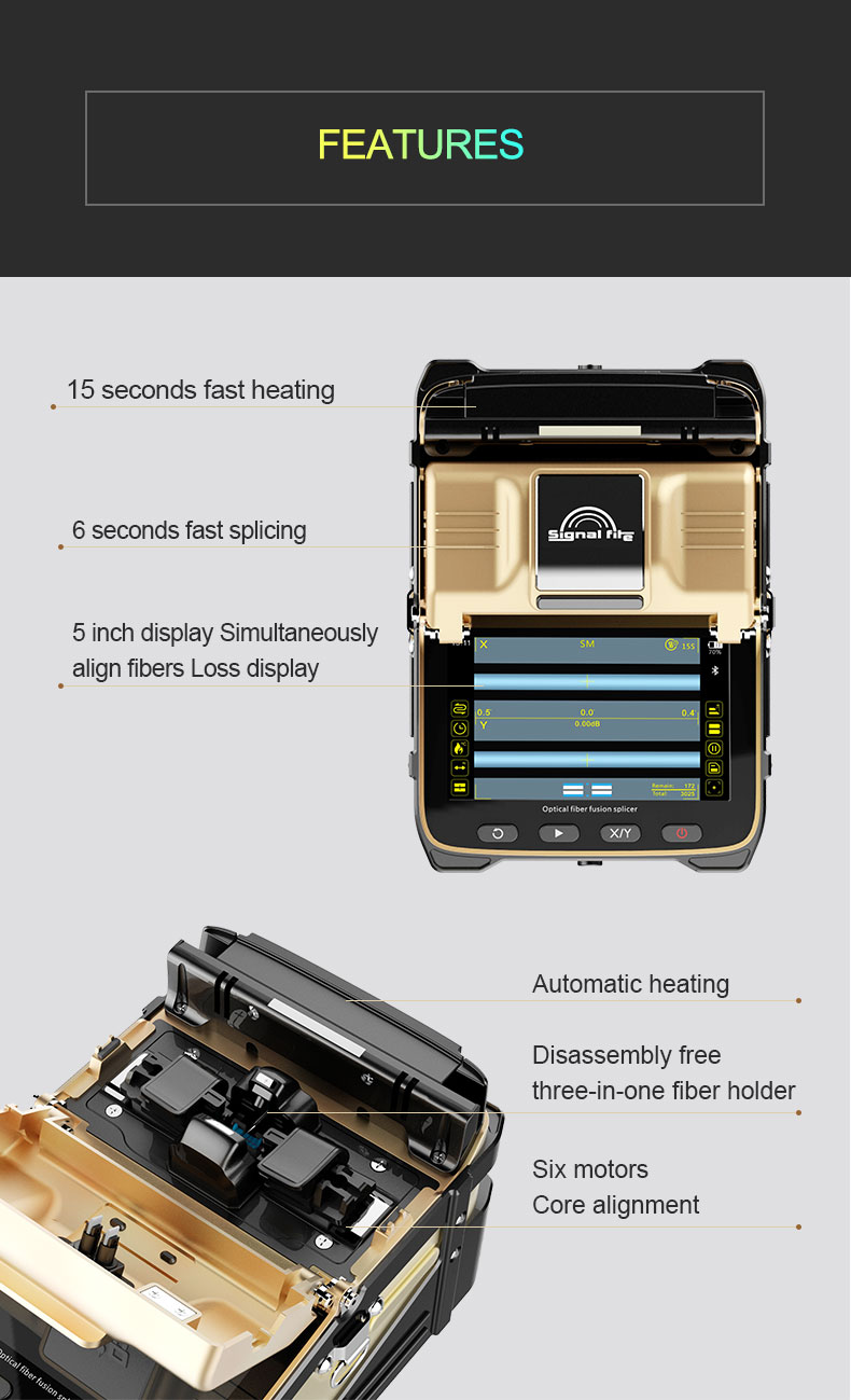 Signal Fire Ai-8C Optical Fiber Fusion Splicer w/ 3-In-1 Fiber Holder Quad-Core Chip CPU