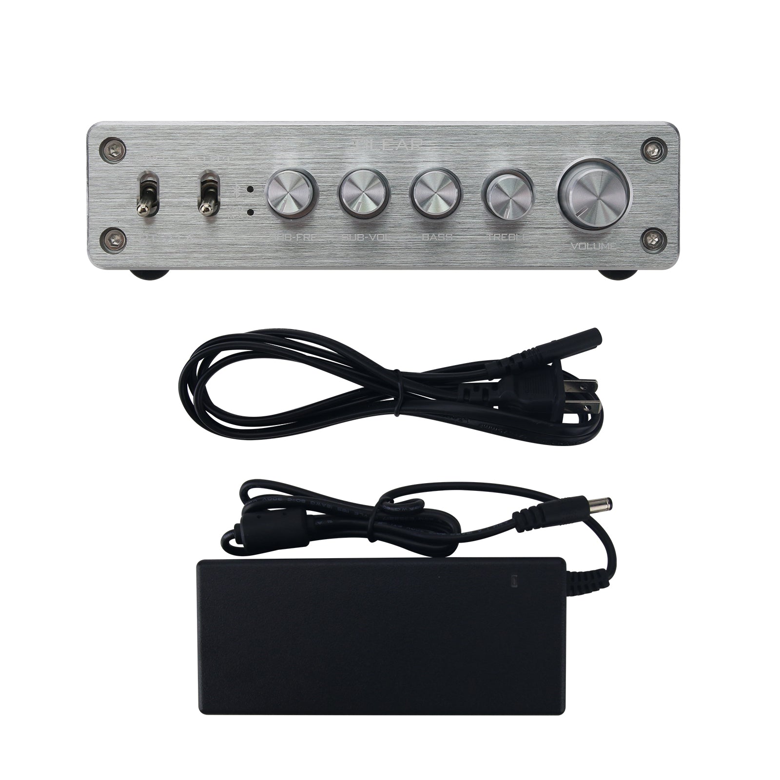 Silvery Panel 2.1 Channel Digital Power Amplifier 50W+50W+100W HiFi Subwoofer Audio Amplifier with 24V/4A Power Adapter
