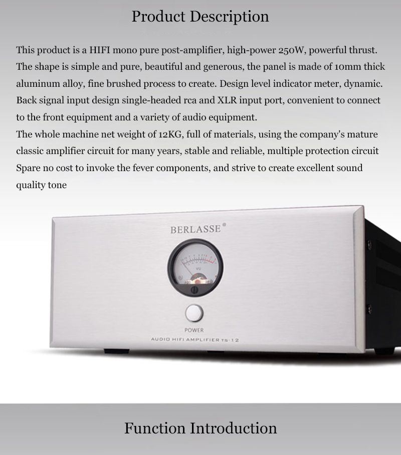 - This product is an HIFI mono pure post-amplifier with a high power of 250W.